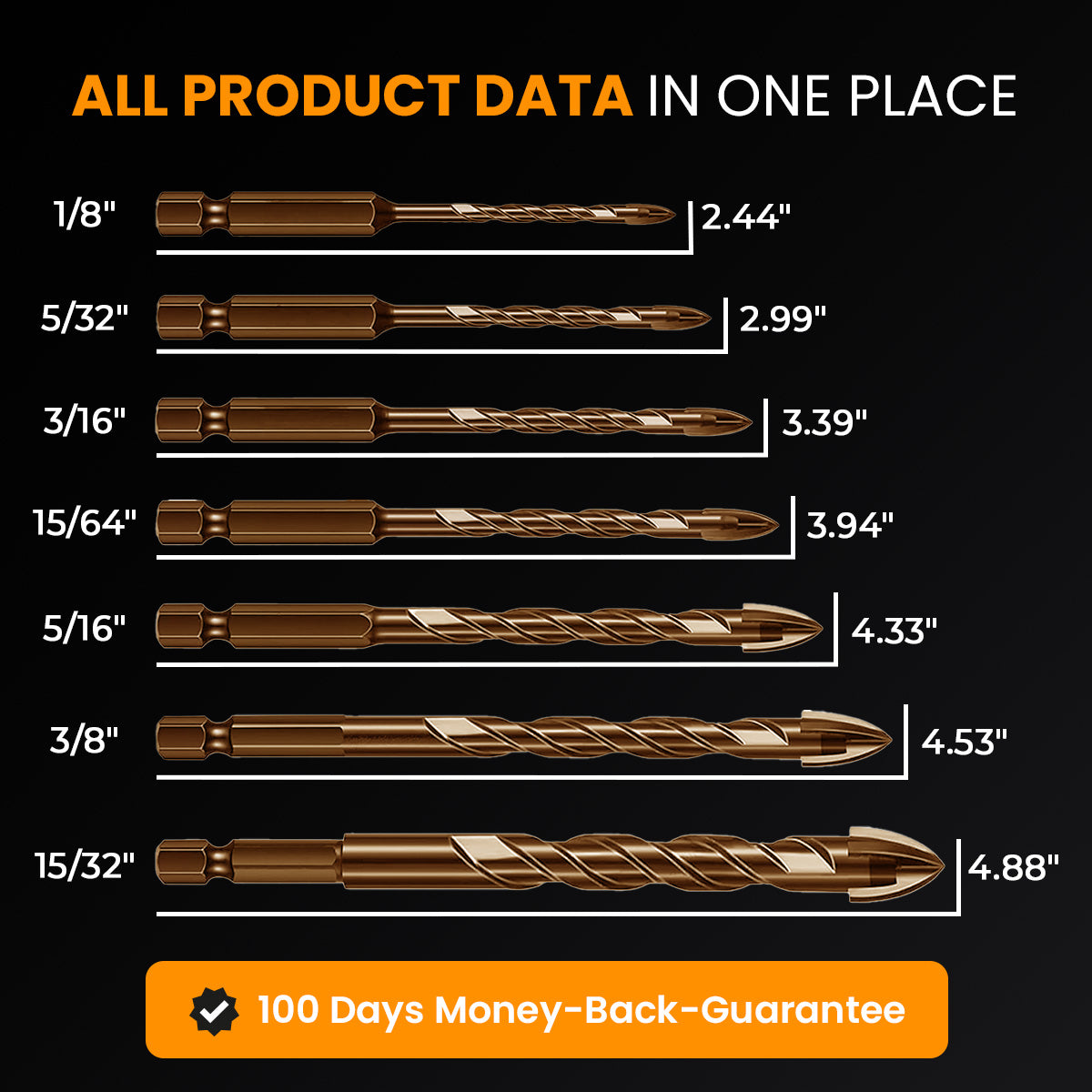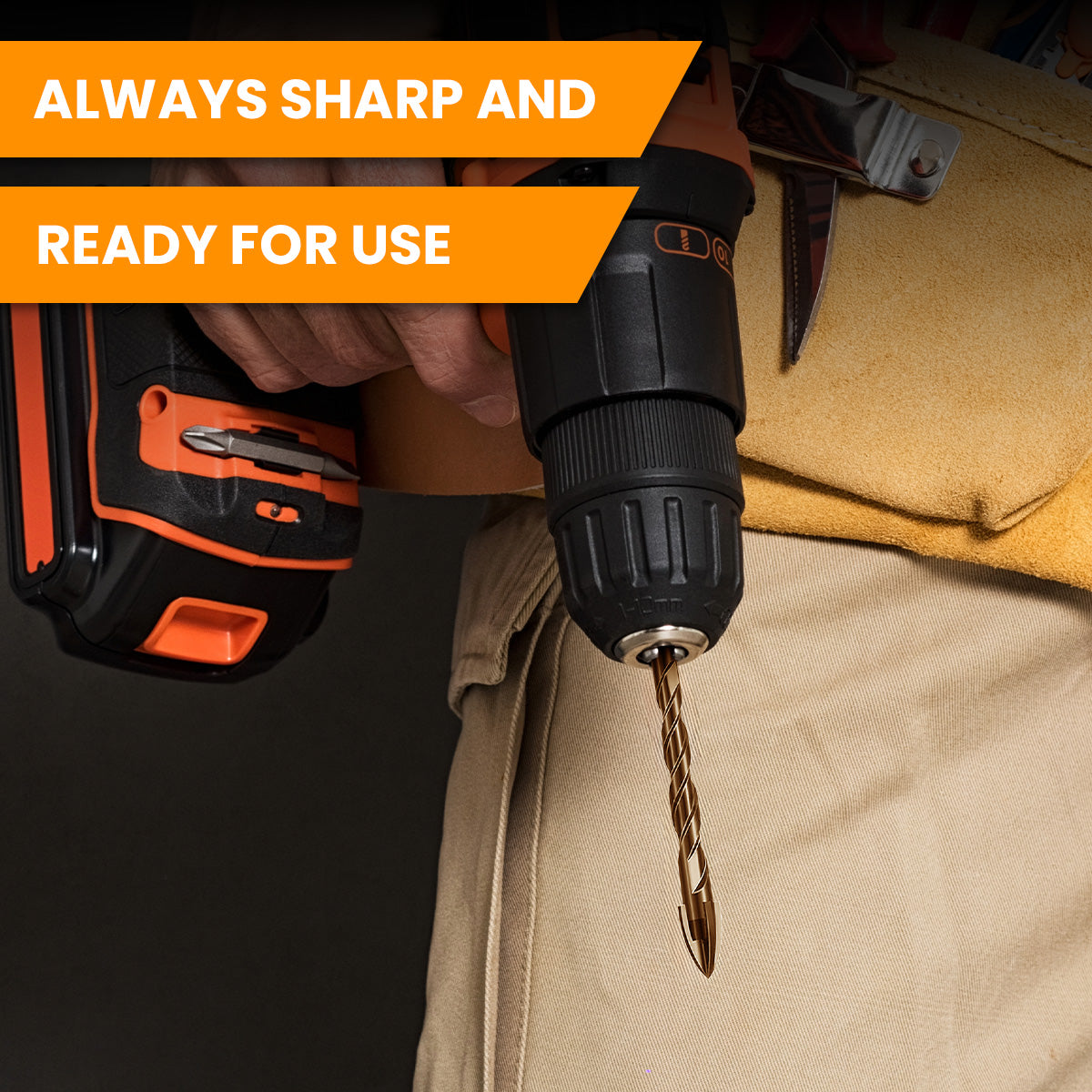 Thanks to the innovative design, the Indestructible Bits™ glide effortlessly through metal, wood, granite, stone, tile, granit, and more. Whatever you need to drill, these bits get the job done with the highest precision and in record time.